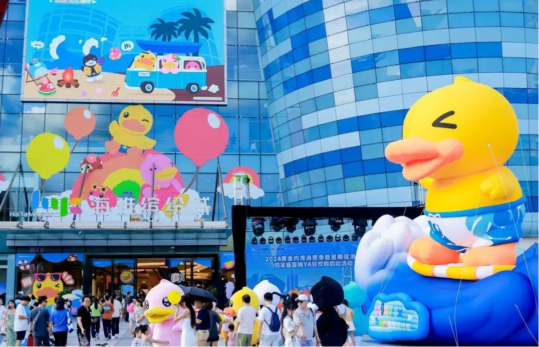 時值暑期,深圳海雅繽紛城邀請B.Duck品牌創(chuàng)辦人“鴨爸爸”許夏林,以及市/區(qū)商務(wù)局、中山商務(wù)局、新安街道辦、市零售商業(yè)行業(yè)協(xié)會等官方代表,共同開啟了2024黃金內(nèi)灣消費季暨暑期促消費——悅享盛夏嗨Ya狂歡購系列活動的序幕,成功完成中國第一自主IP B.DUCK小黃鴨的“B.DUCK嗨YA狂歡節(jié)全國首展”。