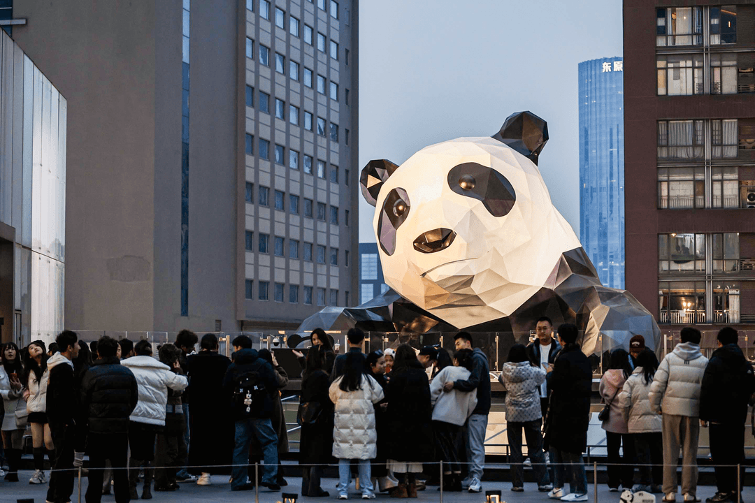 成都IFS的大熊貓“I AM HERE”,以幽默的“爬墻”姿勢呈現(xiàn)于林立高樓之間,已經(jīng)成為極具項目辨識度甚至城市名片式的獨家地標(biāo)。這個大熊貓藝術(shù)裝置不僅深受本地公眾和國內(nèi)外游客喜愛,還成為眾多明星名流必到訪的打卡之地,在社交媒體平臺上熱度居高不下,吸引了大量游客前來打卡,為成都IFS帶來了巨大的流量和品牌曝光。更贏得來自行業(yè)的國際認(rèn)可,斬獲亞洲公關(guān)大獎“最佳品牌策劃”金獎。
